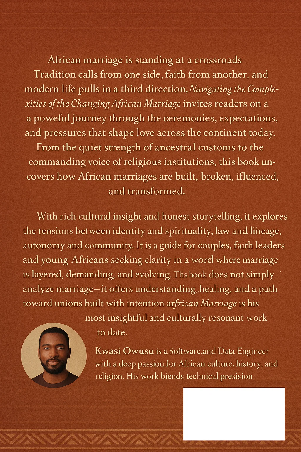 Written for Africans at home and in the diaspora, as well as anyone seeking to understand African marriage beyond stereotypes, this book offers clarity, compassion, and cultural insight for a changing generation.